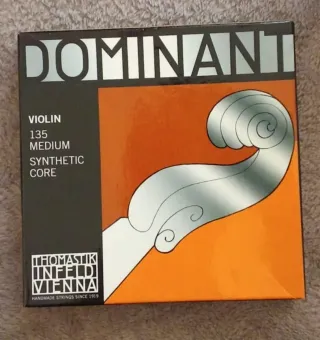 🎻 Juego de cuerdas para violín Thomastik Dominant 135 🎻 Marca: Thomastik-Infeld Modelo: Dominant 135 Instrumento: Violín 3/4 Núcleo: Sintético (Perlon) Tensión: Media Fabricación: Austria Incluye: Mi (E): Acero estañado, terminal bola La (A): Entorchado en aluminio Re (D): Entorchado en aluminio Sol (G): Entorchado en plata ✔️ Sonido cálido, claro y equilibrado ✔️ Excelente proyección y estabilidad de afinación ✔️ Muy populares entre estudiantes avanzados y profesionales