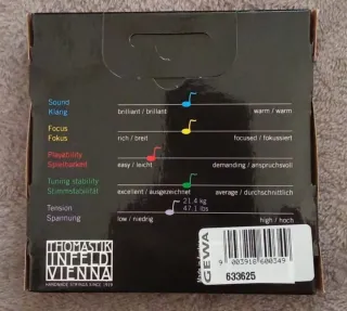🎻 2 Juego de cuerdas para violín Pirastro Obligato 4/4 🎻 Marca: Pirastro Modelo: Obligato Instrumento: Violín 4/4 Núcleo: Sintético Tensión: Fuerte Fabricación: Alemania Incluye: 2xMi (E): Acero, terminal bola 2xLa (A): Entorchado en aluminio 2xRe (D): Entorchado en plata 2xSol (G): Entorchado en plata ✔️ Sonido cálido, rico y potente ✔️ Excelente respuesta y estabilidad ✔️ Uso profesional y avanzado