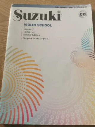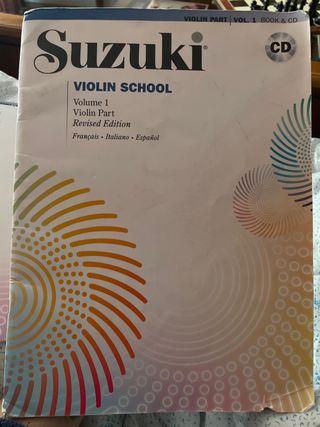 Libro Suzuki Violin School, volumen 1, parte del violín. Edición revisada. Está en buen estado. Incluye: - Libro Suzuki Violin School Vol. 1 (Violín) - Edición revisada - Idiomas: Francés, Italiano y Español