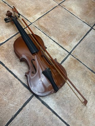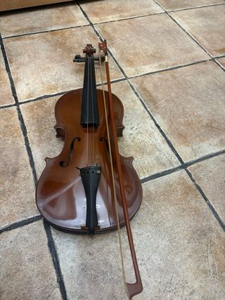 Violín de tamaño 3/4. Esta muy nuevo, hace años que lo deje de tocar. - Acabado en madera de color naranja. - Incluye soporte para el hombro. - Incluye afinador. - Incluye resina. La cuerda mas fina esta salida, la tengo, pero lo mejor seria cambiarla.