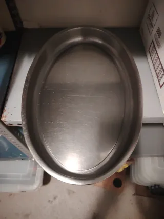 Bandeja de acero inoxidable con forma de violín. - Material: Acero inoxidable. - Diseño ovalado.