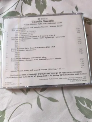 Conjunto de 5 CDs de música barroca, con obras de A. Vivaldi, Ph.Telemann, A.Scarlatti, C.P.E.Bach, A.Corelli, G.Tartini,... Interpretes: Capella Savaria, Orquesta de Cámara Eslovaca Bohdan Watchal, Orquesta de Cámara Talich de Praga, Virtuosi di Praga con Oldrich Vlcek; Josef SUK, violín con Ales Barta, órgano.
