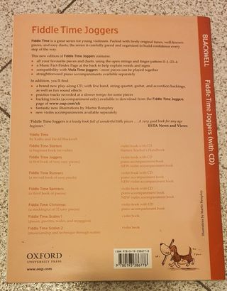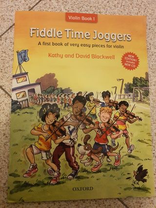 1r libro de Fiddle Time Joggers. Contiene partituras sencillas para recién iniciados con el violín. Incluye CD. El libro está en muy buen estado, solo tiene un escrito pequeño (podéis verlo en las fotos) el resto está perfecto.