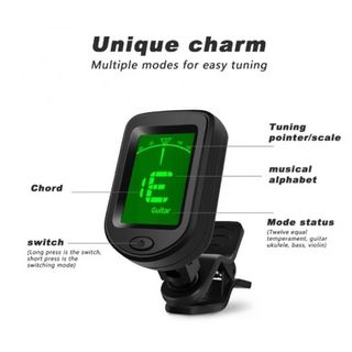 Sintonizador de Guitarra Digital l, sintonizador de tono con Clip para ukelele eléctrico, bajo, violín, Universal, giratorio de 360 grados, sensible, batería integrada SINTONIZADOR DE Guitarra Digital con Clip, sintonizador de Guitarra LCD giratorio de 360 grados, sintonizador Digital de pantalla LCD Universal portátil Descripción: Método de sintonización: sintonización automática Ajuste de error: ± 0,5 Peso: 23g Tamaño: 45x30x45mm Color: Negro Artículos de afinación: 12 Temperamento igual/Ukelele/guitarra/bajo/violín Lista de embalaje: sintonizador * 1, batería * 1, manual * 1