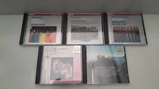 Conjunto de cinco CDs de música clásica con obras de compositores reconocidos. - Schumann: Carnaval, Kinderszenen, Waldszenen con Claudio Arrau. - Beethoven: Violin Concerto, Romances Nos. 1 & 2 con Arthur Grumiaux. - Grieg/Schumann: Piano Concertos con Claudio Arrau. - Stravinsky: Le Sacre du printemps, Pétrouchka con Leonard Bernstein. - Wagner: Coros de ópera (Lohengrin, Götterdämmerung, Parsifal, etc.) con Wilhelm Pitz.