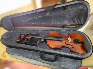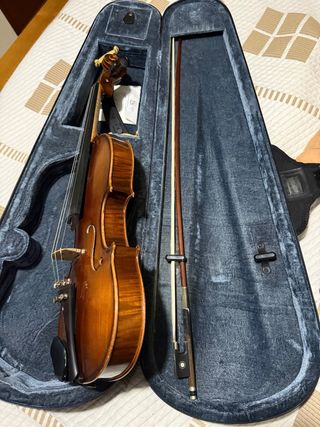 Violín impecable ideal para estudiantes. Violin de tamaño [talla 4/4] en perfecto estado, ideal para quien esté empezando en el conservatorio o escuela de música. El pack incluye: Violín: Cuerpo con barniz brillante, sin grietas ni golpes. Arco: En buen estado de tensión. Estuche rígido: Muy ligero, tipo mochila, con interior aterciopelado para máxima protección. Extras: Incluye barbada de madera y afinadores de precisión en el cordal para facilitar la afinación. Se puede ver y probar sin compromiso.
