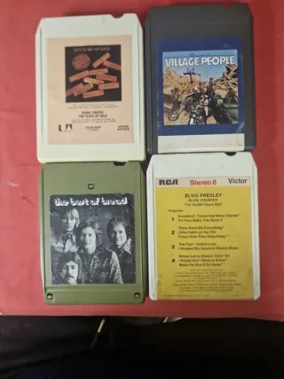 Lote de 4 cintas de 8 pistas con música Country/Rock Funcionamiento perfecto. - Kenny Rogers: Ten Years of Gold - Village People - Bread: The Best of Bread - Elvis Presley: Elvis Country
