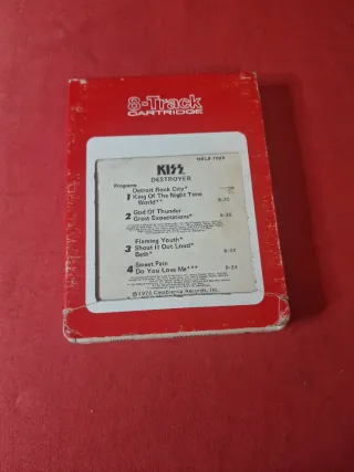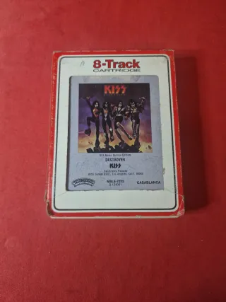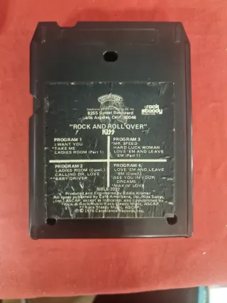Cinta de 8 pistas del álbum Rock and Roll Over de KISS. Funciona perfectamente, sonido excelente. - Portada icónica de la banda. - Formato de cinta de 8 pistas. 1976 Casablanca Records Inc.
