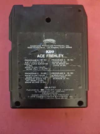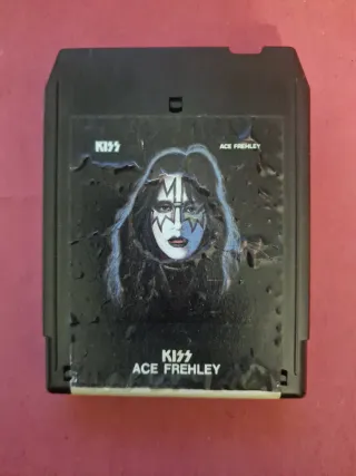 Cinta de 8 pistas de Ace Frehley de KISS. Funcionamiento y sonido excelente. - Diseño icónico de Ace Frehley. - Formato de cartucho de 8 pistas.