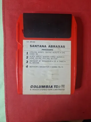 Cinta de 8 pistas del álbum Abraxas de Santana. La carcasa es de color naranja. Casi como nuevo, funciona perfectamente. - Álbum: Abraxas - Artista: Santana - Formato: Cinta de 8 pistas Columbia Records.
