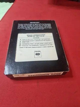Cartucho de cinta 8 pistas Stereo del álbum Born In The U.S.A. de Bruce Springsteen. En perfecto estado, como nuevo, muy buen uso y funcionamiento, con sonido estéreo excelente. - Formato: 8-Track Stereo Tape Cartridge. - Referencia: QCA 38653. - 1984 Columbia House, New York.