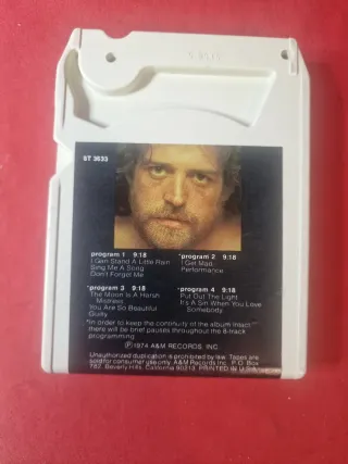 Cinta de 8 pistas del álbum I Can Stand a Little Rain de Joe Cocker. Probado funcionando perfectamente, sonido excelente - Sello discográfico A&M Records. - Número de catálogo: 8T 3633 / S 104532. - 1974 A&M Records: 1416 North La Brea Ave, Hollywood, Calif. 90028.
