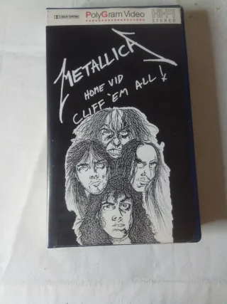Video musical de Metallica Home Vid Cliff 'Em All. Funcionamiento sin fallos. - Cinta de video. - Portada con dibujo de la banda. - Incluye Dolby System y Hi-Fi.