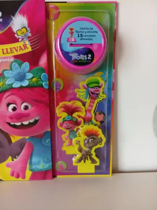 Cuento con altavoz portátil con diferentes muñecos de Trolls y canciones