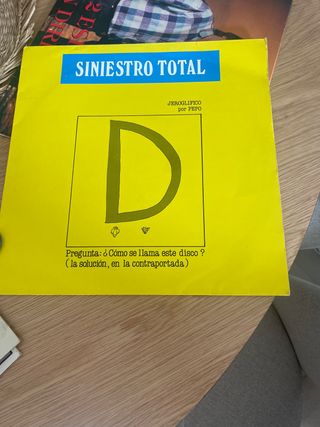 Vinilo del grupo Siniestro Total. - Portada con diseño Jeroglífico por Pepo. - Pregunta en portada: ¿Cómo se llama este disco? (la solución, en la contraportada).