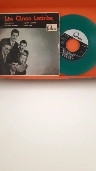 Disco de vinilo del grupo Los Cinco Latinos, editado por Fontana. - Canciones: Come primo, Tre volte baciami, Aquella serenata y Buona sera. - Disco de 45 RPM.