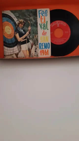 Disco de vinilo del Festival de San Remo de 1961. - Portada con diseño vintage. - Disco de vinilo negro.