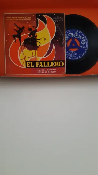 Disco de vinilo El Fallero con Rapsodia Valenciana y Coplas de mi Tierra. - Banda Unión Musical de Liria. - Director Maestro Antonio Peinado. - Sello discográfico Alhambra. - Fabricado en España.