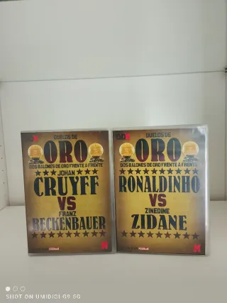Colección de dos DVDs con Duelos de Oro del fútbol. - Duelos de Oro: Cruyff vs Franz Beckenbauer - Duelos de Oro: Ronaldinho vs Zinedine Zidane - Incluye Dos Balones de Oro Frente a Frente en cada DVD.
