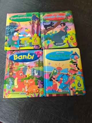 Colección de 4 libro-puzzles Uno en castellano (Blancanieves) y los otros 3 en euskara Algunas hojas o piezas de puzzle tiene dobleces o pequeñas roturas arregladas que no afectan para su uso
