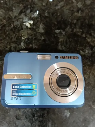 Cámara Samsung S760, 7.2 Megapixel, Zoom Óptico 3x, Detección de rostro, Estabilización de imagen digital, Alta sensibilidad ISO 1000, Guia de ayuda de pantalla, 11 modos de escena, LCD 2.4", funciona perfectamente, las 8 pilas incluidas son de buena calidad, está cámara solo lleva pilas de alta calidad, no cualquier pila.