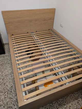 Estructura de cama Malm en color beige, con medidas de 1.40x2 metros. - Somier de láminas y viga central metálica incluido. - En perfectas condiciones, se ha usado solamente un ano.