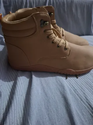 Botas de invierno de color beige, a estrenar. - Diseño de caña alta. - Cierre con cordones. - Ojales metálicos.