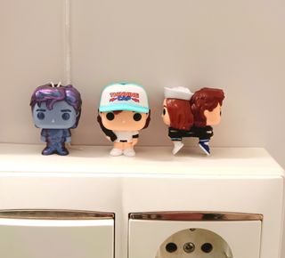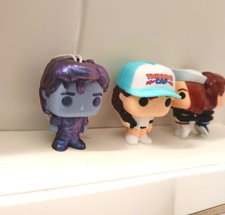 Mini Funkos Pop! Stranger Things Kinder Joy, incluye; - Steve. - Dustin, tengo su cuerda también. - Robin y Steve.
