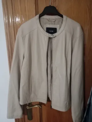 Chaqueta de cuero sintético con un diseño moderno y versátil. - Cierre frontal de cremallera. - Bolsillos laterales con cremallera. - Cuello solapa. - Puños con cremallera.