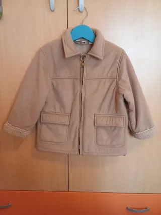 Abrigo de ante con forro interior de borreguito. - Color camel. - Cierre de cremallera. - Dos bolsillos delanteros. - Puños con detalle de borreguito. - Talla:3 años (92-97cm). - Medidas de sisa a sisa 38cm y de largo 44,5cm.