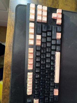 Teclado mecánico Razer Huntsman Tournament Edition con teclas personalizadas en rosa y negro. - Teclas de PBT duraderas. - Diseño compacto TKL (Tenkeyless). - Cable USB-C desmontable. -switches opticos lineales (los mejores para competitivo) Vale nuevo 150 en amazon ,podeis mirar y hacer ofertas
