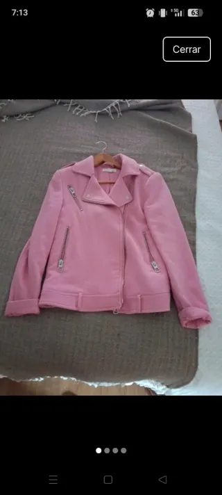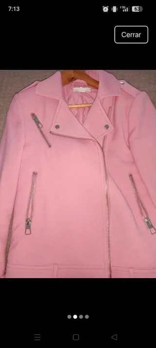 Chaqueta estilo biker en color rosa. - Diseño acolchado. - Cremalleras plateadas. - Cuello solapa.