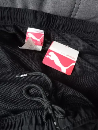 Pantalón deportivo de la marca Puma en color negro. Cuenta con cordones ajustables en la cintura. - Logo de Puma en la etiqueta. - Tejido de malla transpirable. ESCUCHO OFERTAS NUEVO A ESTRENAR
