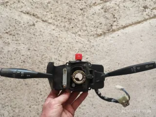 Conjunto de interruptores de luces y limpiaparabrisas para Suzuki Samurai. - Interruptor de luces con posiciones OFF, INT, LO, HI. - Palanca de limpiaparabrisas con función PULL. - Botón de intermitentes de emergencia rojo. - Conector de cableado incluido.