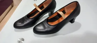 Zapatos de flamenca negros, talla 40. Perfectos para bailar flamenco.De Piel. - Diseño clásico con tira elástica. - Tacón cómodo y estable. - Interior forrado para mayor confort.