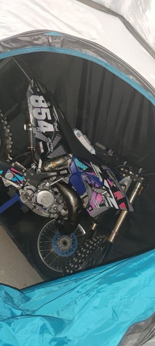 Moto de cross Yamaha YZ125. - Diseño con gráficos personalizados. - El escape de la foto no esta ya tiene el original - Marca Yamaha. piston cambiado con apenas 30h cubiertas al 80% se da kit restayling 2025 nuevo en su casa sin estrenar para pasarla a 2025 con su deposito sillon y todo lo necesario