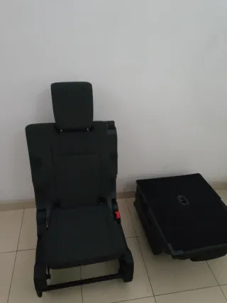 Conjunto de asientos de la tercera fila para Volkswagen Caddy 5. Están fabricados en tela de color negro. - Asiento completo con reposacabezas. - Tapicería de tela negra.