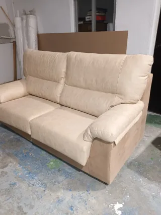 Sofá de tres plazas, ideal para tu salón. Su diseño moderno y confortable lo convierte en el mueble perfecto para relajarse. - Tapicería en tela - Tonos neutros que combinan fácilmente.