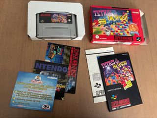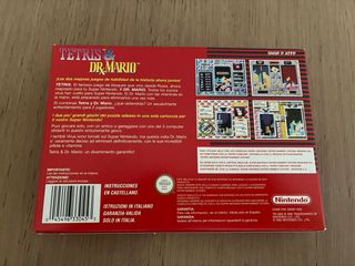 Juego de Super Nintendo PAL de Tetris & Dr. Mario. Nuevo a estrenar. - Caja original. - Manual de instrucciones. - Folleto Club Nintendo.