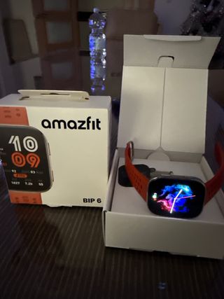 Smartwatch Amazfit BIP 6 con correa roja. - Pantalla a color. - Diseño moderno y ligero. Batería de asta 7 días