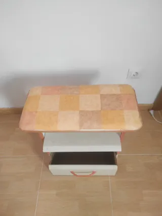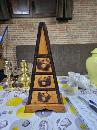 Original mueble auxiliar con forma triangular y tres cajones decorados. - Diseño único con forma piramidal. - Tres cajones con dibujos de ratones. - Fabricado en madera.