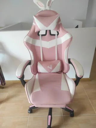 Silla gamer de estilo moderno con un divertido diseño. - Color rosa y blanco. - Detalles de orejas de conejo. - Cojín lumbar incluido.