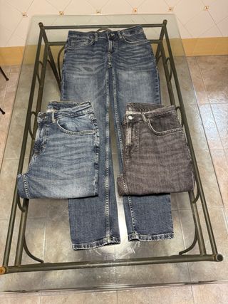 Son nuevos . Comprados este enero , mirar el tiket en las fotos . Los vendo porque nos equivocamos de talla y sin darme cuenta le quite las etiquetas y los lave y ya no puedo devolverlos . Los tres son el mismo modelo y talla . Son elasticos