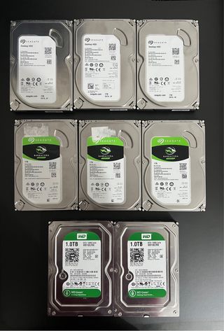 Se vende lote de 8 discos duros HDD de 1TB. - 3 discos duros Seagate Desktop HDD de 1TB. - 3 discos duros Seagate Barracuda de 1TB. - 2 discos duros Western Digital Green de 1TB. Precio lote completo 160 euros. Pregunta por precios individuales