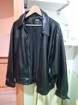 Cazadora bomber de efecto piel. - Cierre de cremallera. - Puños y bajo elásticos. - Cuello camisero.
