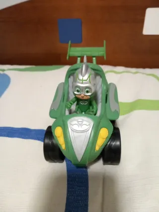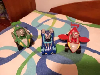 Set de tres vehículos de los personajes de Pj Masks. - Vehículo verde de Gatuno. - Vehículo azul de Geko. - Vehículo rojo de Buhita. Se pueden vender por separado. 6 euros.