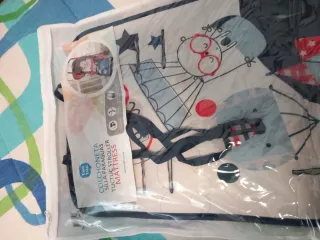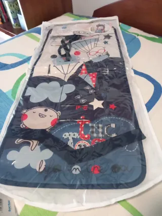 Colchoneta de verano para silla de paseo con un divertido diseño. - Estampado de nubes, estrellas y personajes. - Tonos azules y blancos. - Marca Tuc Tuc.