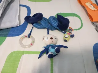 Juguete colgante para coche de bebé de la marca Tuc Tuc. Incluye un peluche de oso, un pez de colores y un sonajero. - Diseño divertido y colorido. - Ideal para estimular al bebé. - Materiales suaves al tacto.