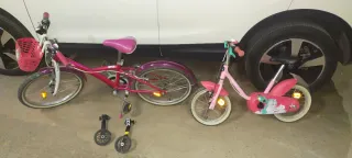 Conjunto de dos bicicletas infantiles. La mayor lleva ruedines.