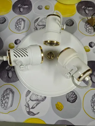 Este plafón de techo combina un diseño elegante con funcionalidad. Los focos son orientables para dirigir la luz donde más lo necesites. - Acabado en blanco y detalles dorados. - Base redonda y plana.